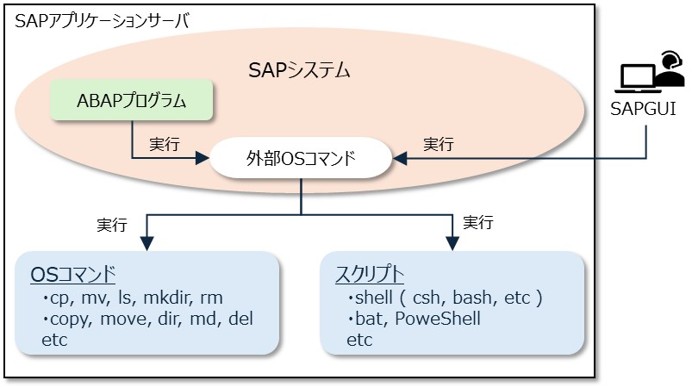 外部OSコマンドを使用することで、SAPGUIやABAPプログラムからSAPアプリケーションサーバ上のOSコマンドやスクリプトを実行することが可能となります。