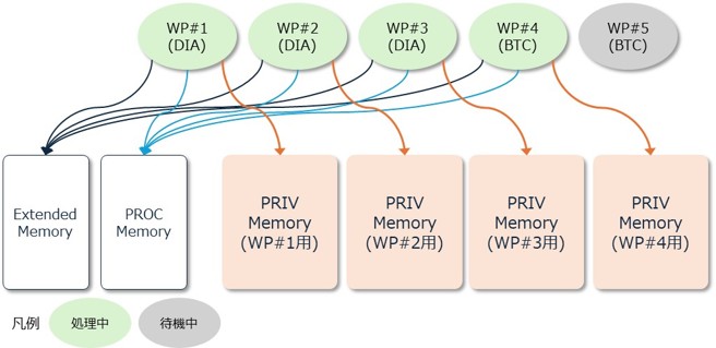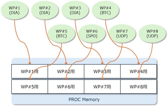 ワークプロセス個別にPROCメモリが割り当てられます。個々のワークプロセスでPROCメモリの領域がそれぞれ存在するのではなく、1つのメモリ領域を全ワークプロセスで使用します。