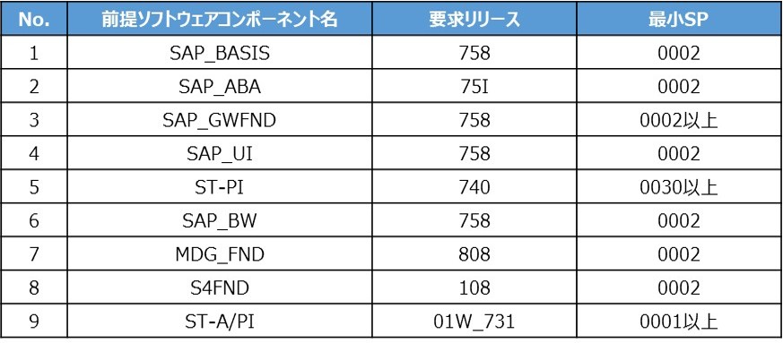 前提ソフトウェアコンポーネント