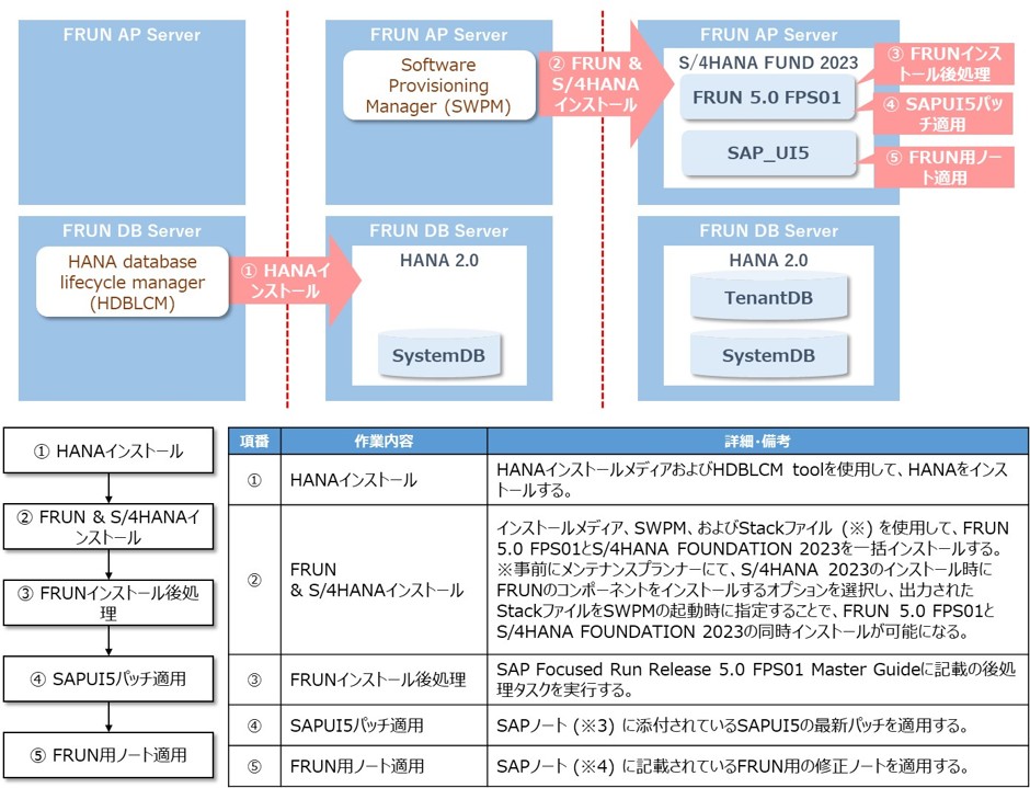 詳細な手順は割愛させていただきますが、SAP Focused Run Release 5.0 FPS01 Master Guideに各手順の具体的な作業内容が記載されているため、詳細を確認したい方は、そちらをご覧ください。