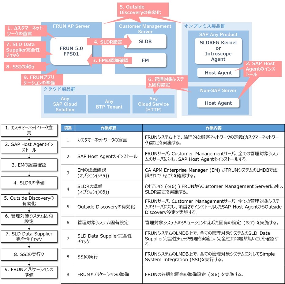 ※6 複数のFRUNシステムを稼働させる場合、またはSAP Solution ManagerとFRUNを並行稼働させる場合に要対応とガイドには記載されています。SLDRは各管理対象システムから送信されたSLD Dataを一度集約し、各ALMシステム ( FRUNやSAP Solution Manager ) に振り分けるシステムであるため、ALMシステムが複数存在する場合は必要になります。