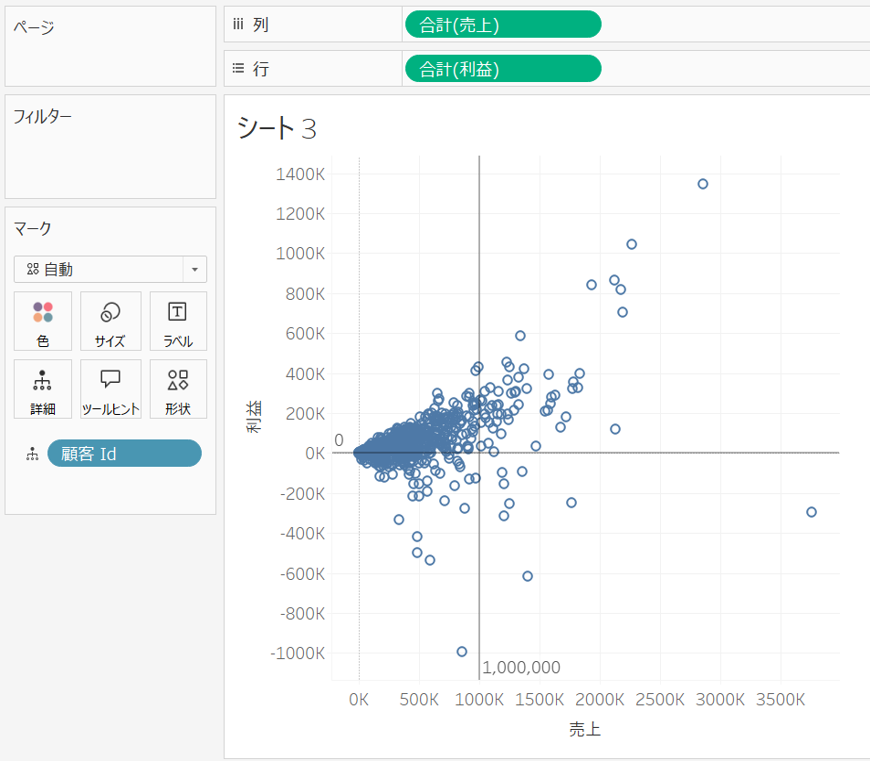 Tableau Desktopで軸が動かない4象限チャートの作成方法