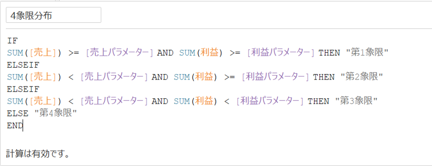 4象限を分類する計算フィールドを作成します。