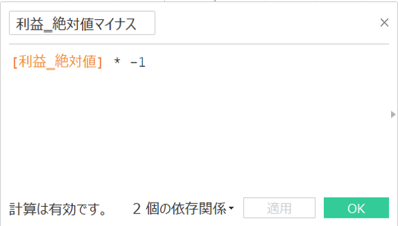 求めた絶対値をマイナスにした計算フィールドも作成します。
